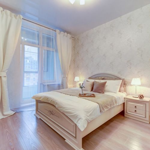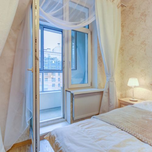 Самолетом до аэропорта Пулково (г. Санкт-Петербург), далее на рейсовом автобусе №39 до остановки «ст. м. Московская», далее на метро до станции «Чкаловская», далее пройти 1,4 км до апартаментов.